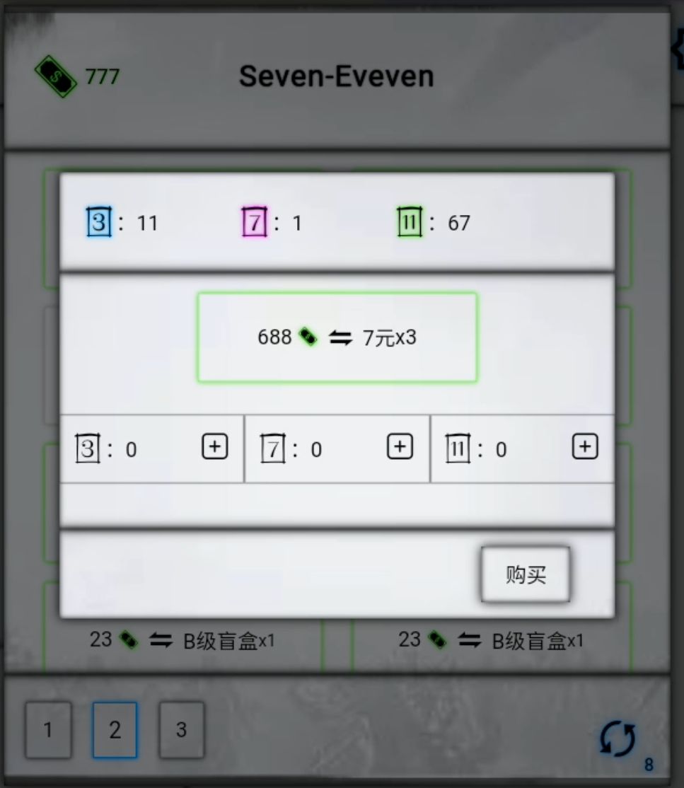 一、货币 什么是货币 货币总共只有三个面额3元 7元 11元,如图2所示,价值20的b级盲盒可以用一个11元+3个三元或者两个7元+两个3元购买 目前商店2已知设定 7元(以下设X)最稀有 每日进商店2送一个或商店2购买或打专家难度爆 3元(设Y)普通,打简单难度小怪爆*1或商店2购买 11元(设Z)价值最低,有手容易普通难度的小怪爆1~6个 根据杀戮会变多 简单难度小怪后面打不过 所以商店88买