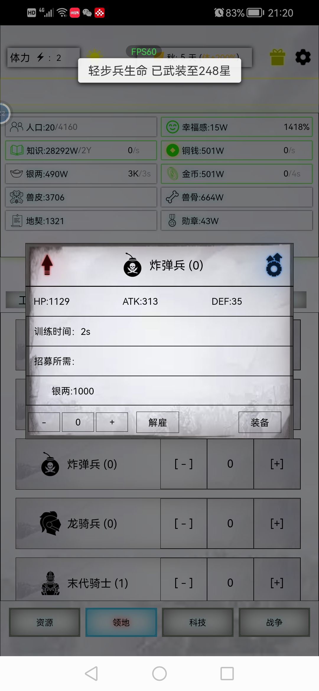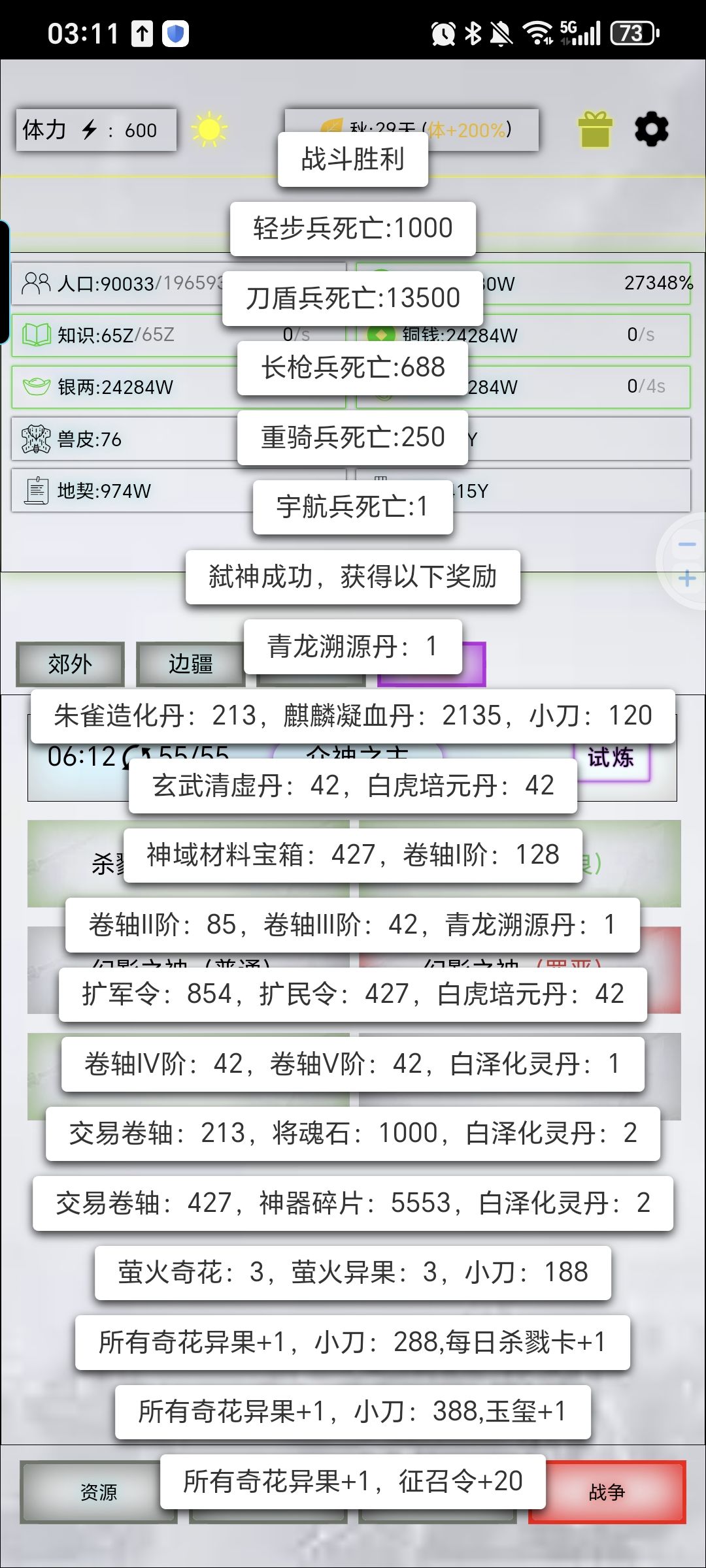 如标题没啥用,步兵1000个多了,上500个就够了,刀盾也多了,1万3完全足够,长枪装备的垃圾魂,核能阵法还没搞好,过两星期把旧日的雨魂刷到,长枪直接10万生命,战损能控制在500