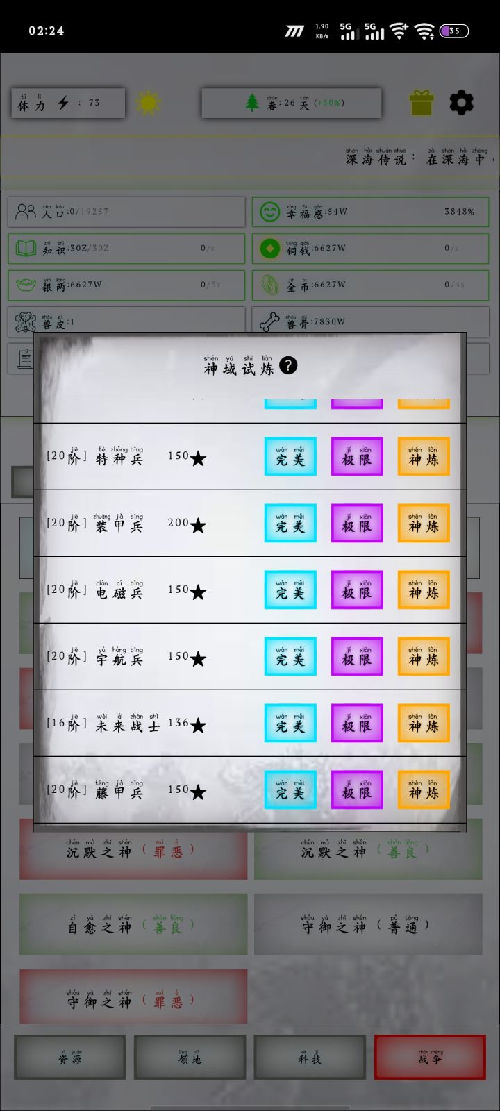进入蛮荒要旧日20wm 未来和刀盾的量子武装都快12了 其他的也是8左右 现在迷茫了