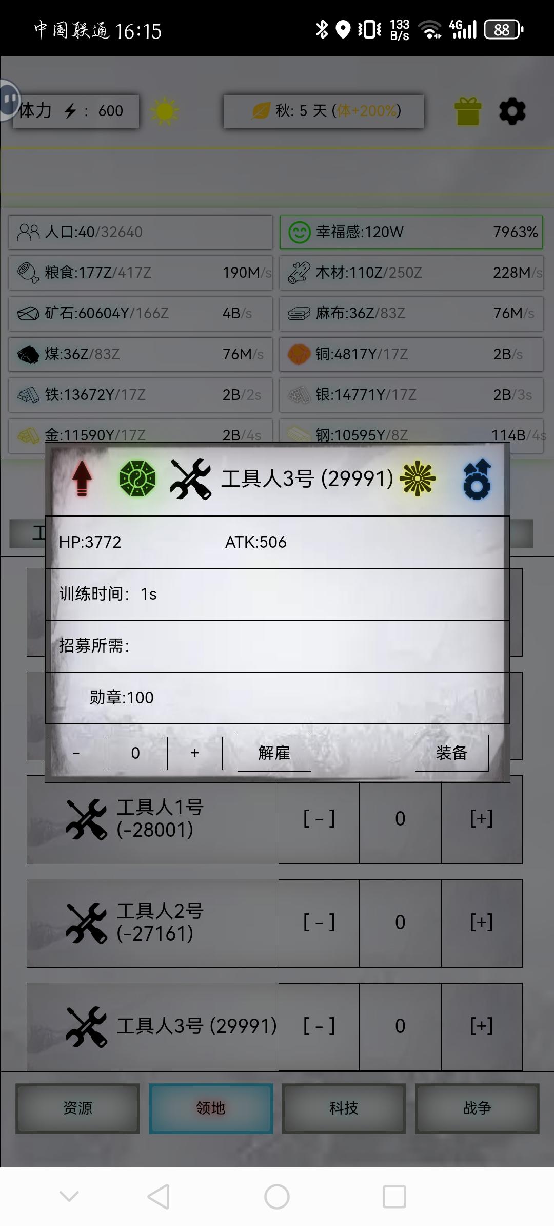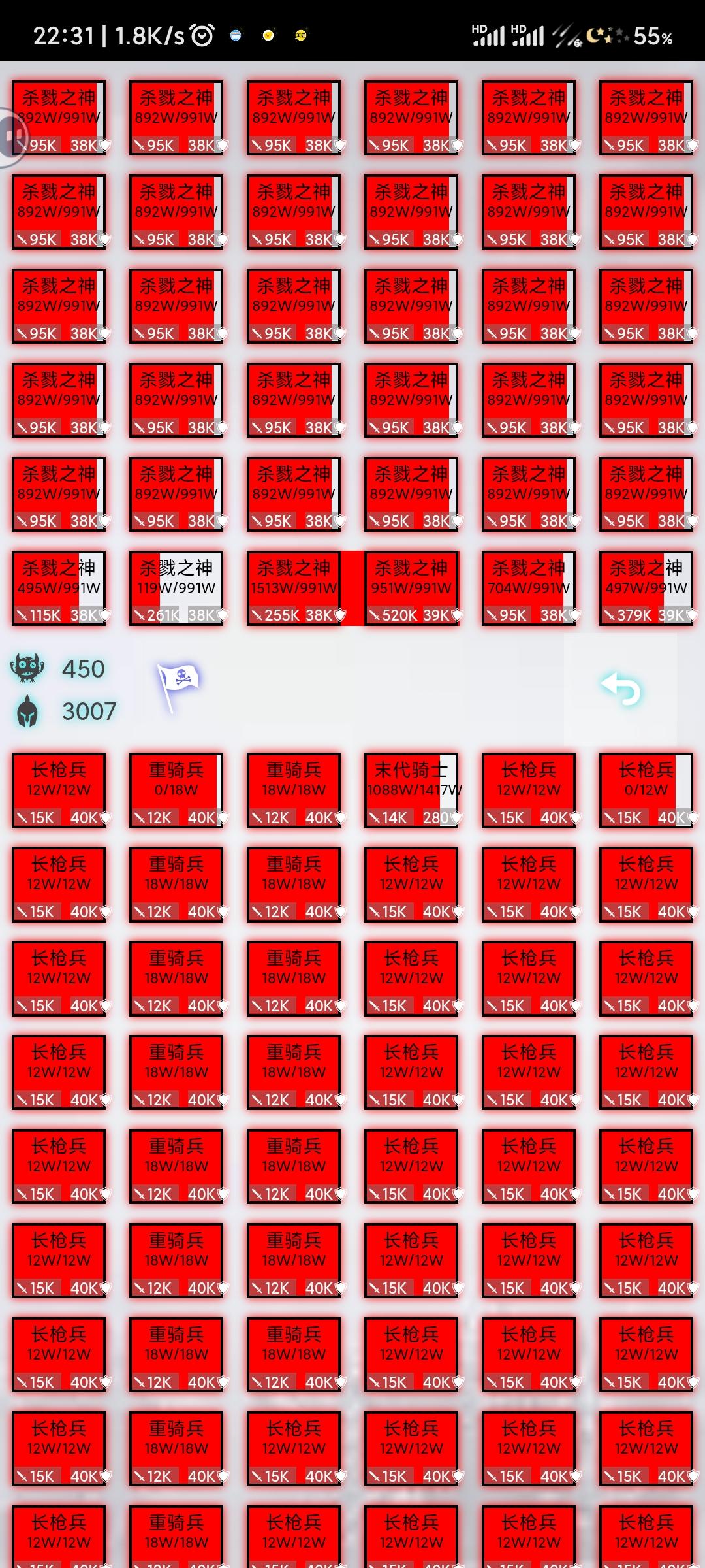 如题,按照论坛里的攻略设置好了,怪点了,杀戮值、顺序和愤怒这些点了,兵种点了,数量设置在300低于目前的容纳上限314,auto点了,但是挂了半天资源也没增加,到战争界面看除了出战从拉满人一起上改成了只上300装甲外其他没变化,不清楚具体什么问题了qwq