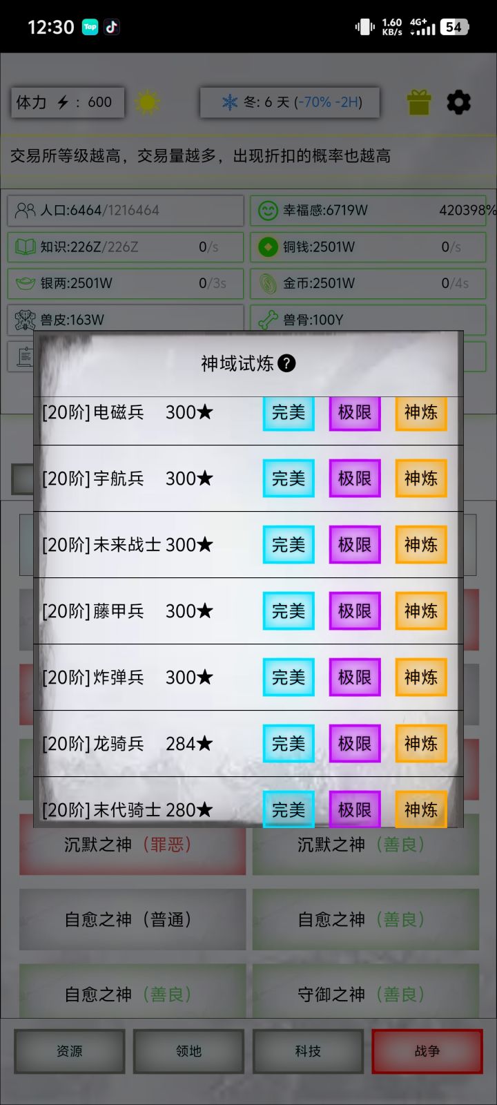 许久不见,209的更新把已经退坑的我炸出来了。这几天209测试版已经发了,花了两天玩了一下,内容很少,相较一年前的203几乎没有新东西,优化方面只多了个一键解雇,还有新兑换码newyear2026,给一些蛮荒魂,一个绝对完美紫马,18个玉玺3。 此外最大的改动就是多了个神炼,也属于觉醒试炼,旧日万米后步行一次解锁,神炼守卫的血量攻击等约为极限守卫的2.5-3倍,能解锁的时候基本上大部分兵种都可以