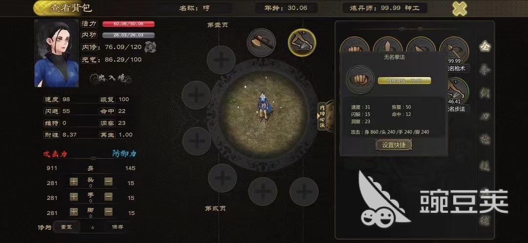年龄 随着在线时间增长 活力 人物的生命值,上限可随年龄一同增长,亦可通过角色境界,戒指增加 内功 人物的内功值,上限可随年龄一同增长,当内功消耗至不足10%并再次补满后,亦会提升最大值 内修 人物的内修等级,活力加内力数值越高则内修等级越高。可影响玩家在呐喊频道的字体颜色,并可炼制更 高等级的丹药 元气 人物的元气值,修炼武功可获得,数值达到一定程度即可提升自身境界 境界 境界越高代表人物能力越