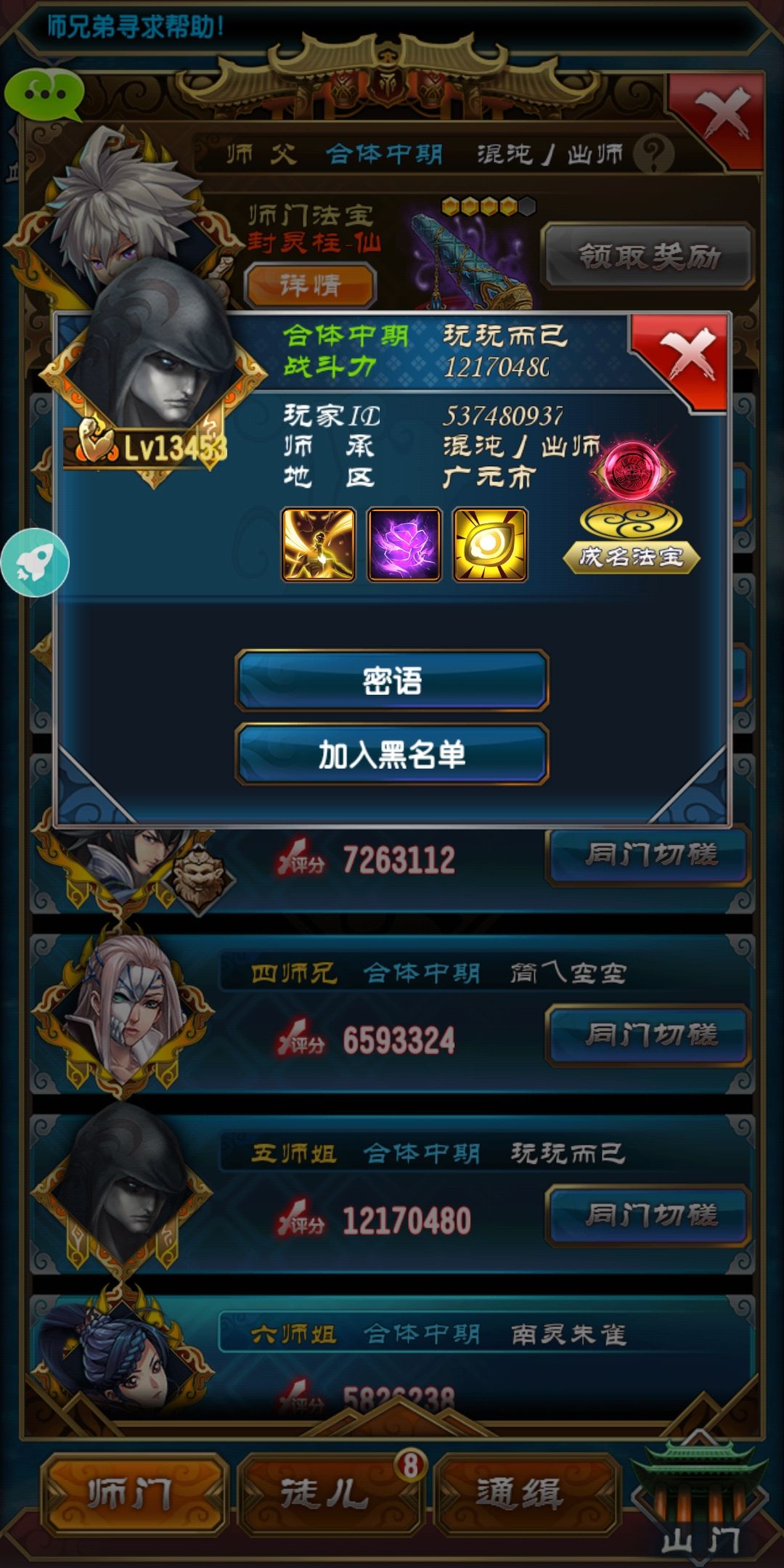号是75区真丹,这个区真丹很有特色,大家相互都比较有默契,都不用氪金功法,红玉还差20个左右可以白嫖到地阙,宠物是随便带的,法宝配置如上一期攻略一样,只是一种思路,大佬就当看个笑话。