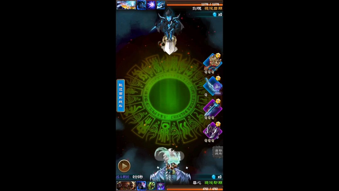 锤子最好在中间释放,注意最好在11秒,11秒最左边会有一个风刃一定要拿尺子冻住,尽量不要让最左边的神通攻击到你,锤子找机会偷袭它就好。多试几遍就能过