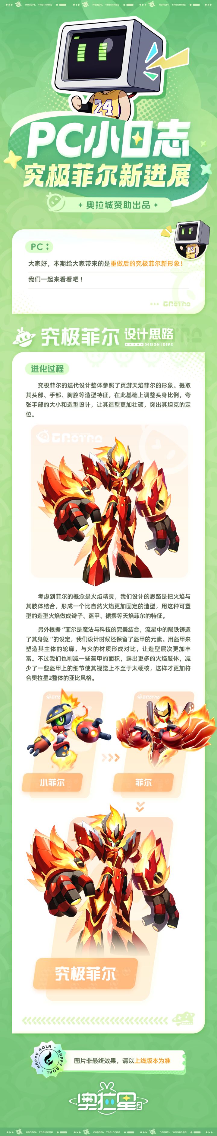 亲爱的小奥拉们,大家好!本期主要给大家带来的是亚比究极菲尔的形象展示和设计思路根据之前大家的反馈建议对菲尔究极进化进行了形象重做希望大家继续提出宝贵建议,我们下一期见!