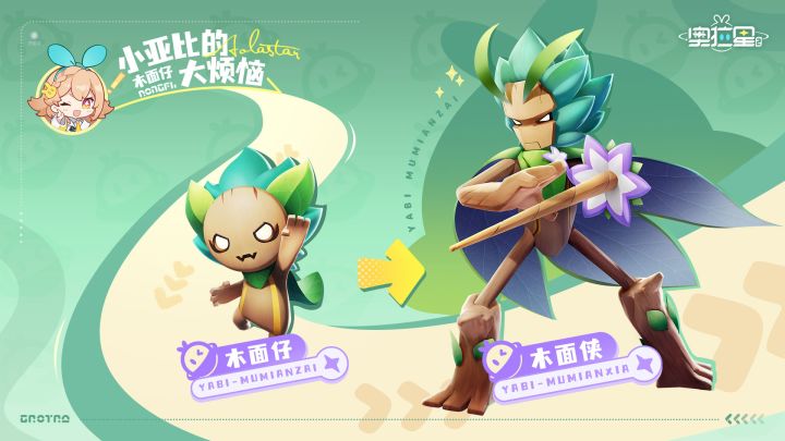 大家早上好!看到那个戴着叶子披风的小亚比没!那就是木面仔虽然有时候会帮倒忙,但木面仔是真的热心肠如果需要帮助,可以大声喊出我的名字 —— 超级英雄木面仔!#奥拉星2#游戏推荐