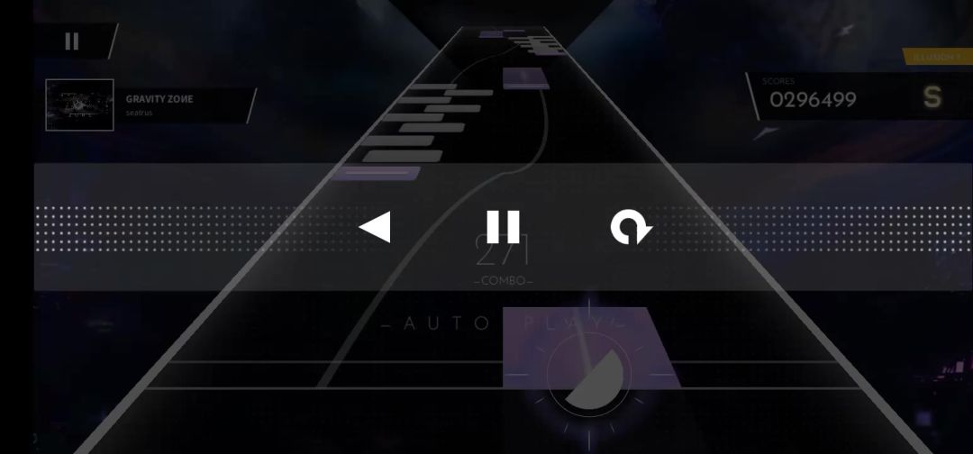 游戏中共有3种不同的音符: Tap: 紫色音符,当音符到达判定线时,点击即可。 Slick: 黄色音符,当音符到达判定线时,将手指置于对应位置即可。 Drag: 紫色长条形音符,当音符到达判定线时,手指按住音符,并按形状滑动,直至尾端到达判定线后松开。 大/小音符:拥有更大/小的判定空间,通常以一个普通音符占用更多/少的判定轨道和更大/小的面积所变成 装饰线:一般起到装饰作用,有时会引导音符的下落