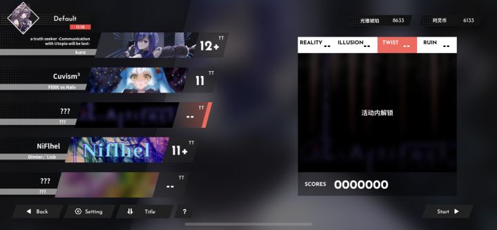 ●游玩歌曲“tsurara”解锁角色莫妮塔(Moneta)——不务正业的娱乐记者●切换角色莫妮塔(Moneta)注:如果没切角色,如下●再次游玩歌曲“tsurara”获取坐标一(记得截图!)●输入坐标一解锁歌曲“Horloge”●游玩歌曲“Horloge”获得线索“虚影”●在角色页面找到桉(Eucaly)(不切角色)获取坐标二(记得截图!)●输入坐标二解锁歌曲“Devil