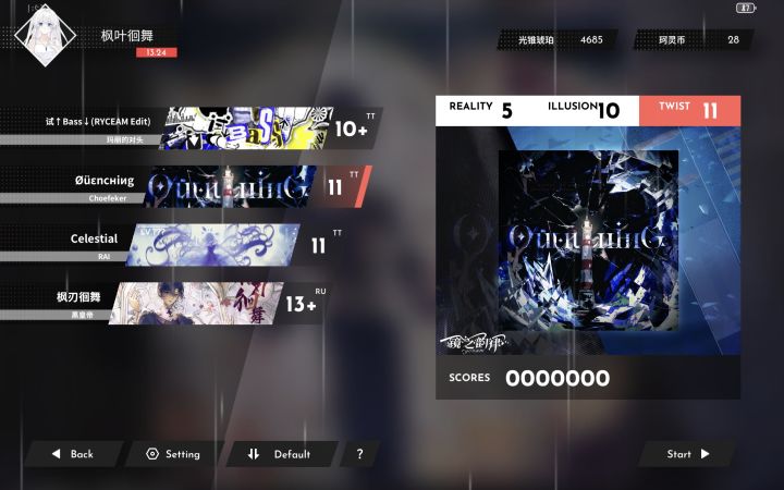 ●游玩歌曲“tsurara”解锁角色莫妮塔(Moneta)——不务正业的娱乐记者●切换角色莫妮塔(Moneta)注:如果没切角色,如下●再次游玩歌曲“tsurara”获取坐标一(记得截图!)●输入坐标一解锁歌曲“Horloge”●游玩歌曲“Horloge”获得线索“虚影”●在角色页面找到桉(Eucaly)(不切角色)获取坐标二(记得截图!)●输入坐标二解锁歌曲“Devil