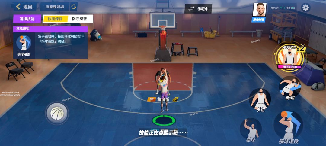 然后就是铭文系统也和灌篮高手的比较像 可以构建自己的玩法 像我就喜欢瓦蓝 目前游戏唯一一个空间c 通过铭文增加中投和三分 拉开空间
