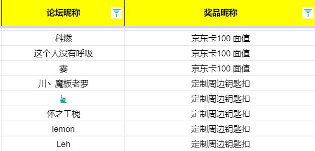 大家好,感谢大家积极的参与本次活动,现将活动中奖名单公布如下↓,没中奖的友友请不要气馁,多关注论坛最新活动公告,祝大家游戏愉快。恭喜以上玩家获得活动奖品,请于9月11日11:59之前主动添加进并填写问卷登记。https://docs.qq.com/form/page/DSlBuQ2FZRkdEdnJF提交问卷后【加入兑奖:957220290】我们会根据留言时间进行处理,请关注群里通知和私信