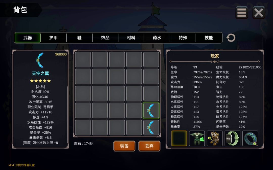 今天玩了下地狱plus弓箭手,觉得自己发育的很好,来说一下。技能选攻击,开局看广告拿了两个附魔水晶卖钱,开局五星是轩辕弓(这样后面就有两把轩辕弓,可以考虑把其中一把转为其它属性,应对某些boss用,如果愿意肝久一点,还可以做几把四星弓,用石头强化,每个属性都来一把),去花五百买个五防木盾,避免被秒,猪头没什么说的,有点走A随便秒,然后主城花三千买个18防的甲(后面打海王不会被秒),先去瀑布刷牛和龙