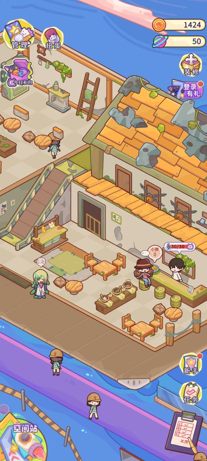 目前来说挺好玩的,引导也很好,玩下来很流畅,有些东西是一步步解锁的,但是有几个点可能有点疑问,第一是钓鱼的鱼饵用完就没了,第二天自动刷新,能不能有其他获取鱼饵的方式,以及希望有鱼饵刷新或者获取的具体指引信息,不然一直到处点都不知道鱼饵怎么获得也很烦。第二是出去找稀有东西的飞船是消耗精灵的,但是这个前期就开了,在前期精灵很少不是很愿意去消耗的情况下,它是否开的过于早了?