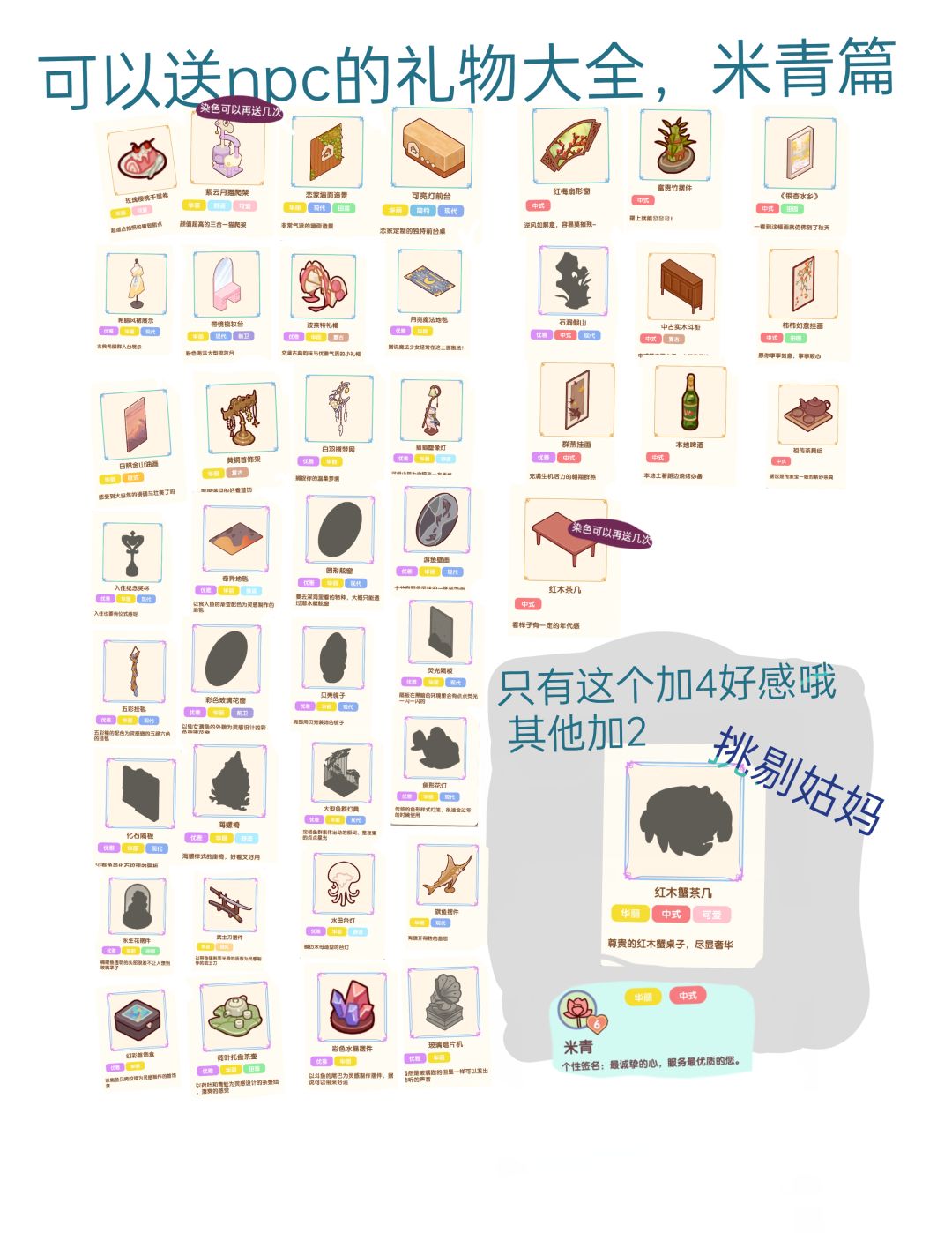 【米青篇】给npc可以加好感礼物大全!