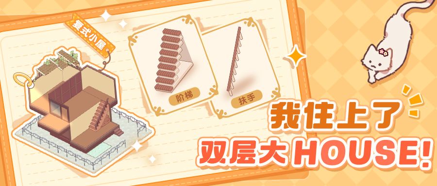 自从上次居居爆料了 即将上线的新户型以后 收到了不少小蜗的期待与关注 更有心急的小蜗直接连环call居居 “快快爆出更多有关复式小屋的消息啊啊啊啊啊啊啊!” 这不,被热情小蜗感染的居居立马找来美工小姐姐 拿到了更多热乎的最新消息 快跟居居一起来看看吧! 房型设计 除了常规可装修的地板、墙纸以及阳台门以外 复式小屋还将新增阶梯和扶手两款可装修类型 看完后,小蜗们在脑海里是不是已经 布置出了n种新颖好