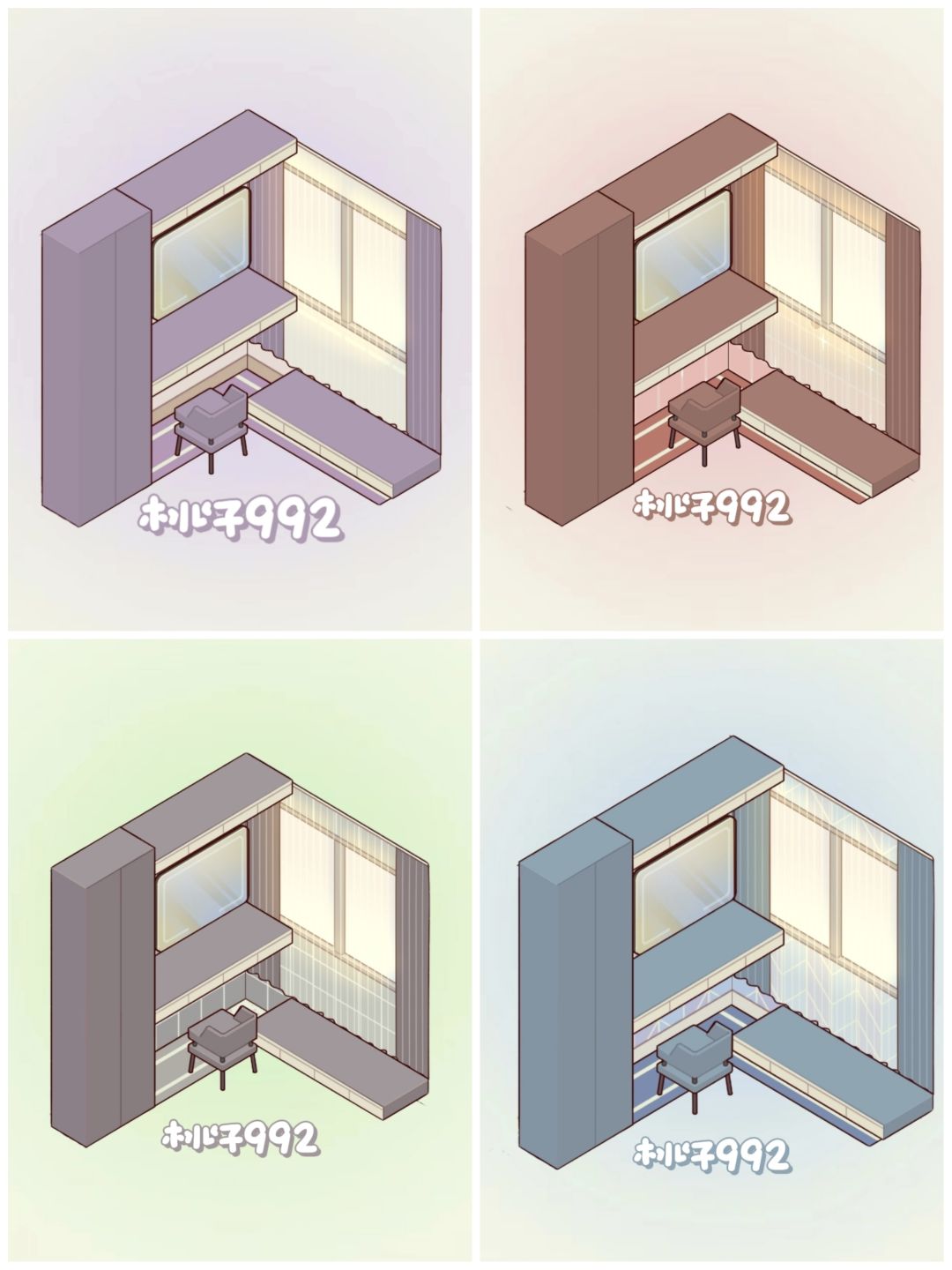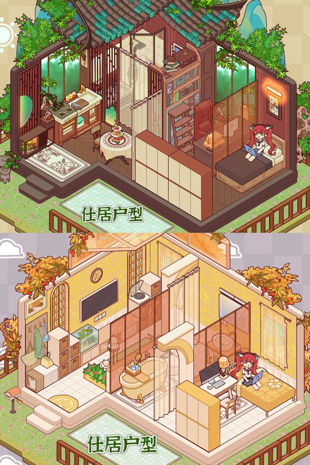 与大家分享一下仕居户型的装修!自从更新之后家具up up,决定重新挑战一下以前的户型,看看按照原本的户型为基础,能不能做到什么必需区域都有! 事实证明我不行哈哈哈[表情_豹哭] 第一种的装修直接砍掉了客厅,但是卧室的面积大大增加了,还能添一个书房,只要不招待家人朋友,独居生活妥妥足够了~ 第二种的装修则是砍掉了厨房,获得了一个长~~~条的客厅,和藏得很深的卧室[表情_看我的] ps:希望官方快快更