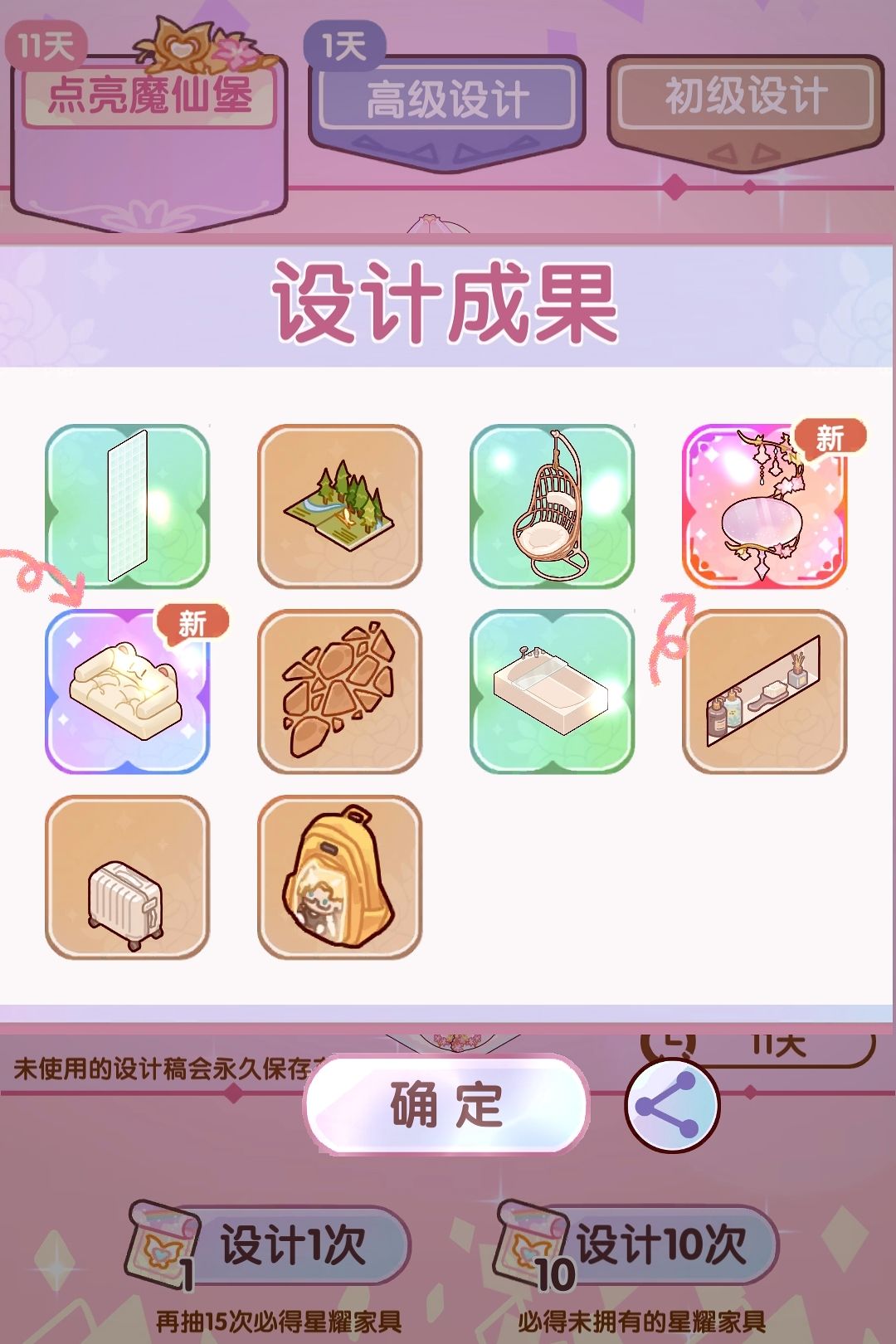 ▷今天0币→抽了赠送的三十发❤️▷星耀套件的特点→家具多,单抽15次才必中一件星耀家具,那这样像往常套件一样单抽是万万不划算的![表情_震惊] ▷所以:我们要凑10张劵,利用每十次必得星耀家具来薅1+1的羊毛[表情_期待] ▷只要每次抽10连发,就能获得一件星耀家具➕一件高级家具 ▷小编用经验来谈,三次都是哦[表情_开心] ▷如果凑不齐10怎么办? ▷小编感觉设计稿放背包里都比套件好看[表情_吃瓜]