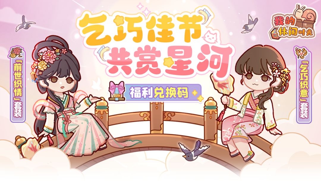 繁星如织,乞巧将至,有少女聚于花桥,以针为媒,乞求巧艺🪡 桂香浮动,巧果玲珑,漫步于星河之下,祈愿喜乐,共庆此夕✨ 「乞巧织意礼盒」&「玲珑织情礼盒」现已上架!购买相应礼盒即可获得「乞巧织意」套装、「前世织情」套装,一起换上锦衣罗裙,前往悠悠镇共度乞巧佳节吧~ 🎁乞巧节福利兑换码🎁 乞巧星河,织梦传情~在游戏界面左上角头像处点击小齿轮中的「兑换码」,输入「乞巧佳节共赏星河」,即可获得一筐七夕巧果*