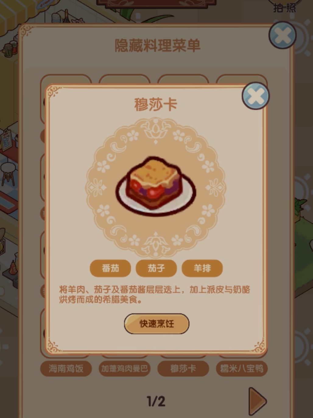 一、【菜谱】 前排提醒:版本更新菜谱有所改动,如果发现需要材料和攻略不同,谨慎再次尝试。如果有玩家发现菜谱错误,及时帮忙指出,楼主会尽快改正。 常见问题1:为什么我没有这个材料?因为还没解锁下一级菜谱,没有解锁该材料。 (解锁新菜谱后,进货处可点击左右箭头切换肉类材料) 常见问题2:为什么别人同样材料做出来了我做不出来?可能是不小心点错了材料没注意到,或者是游戏bug,因为最近收到很多玩家反馈(八