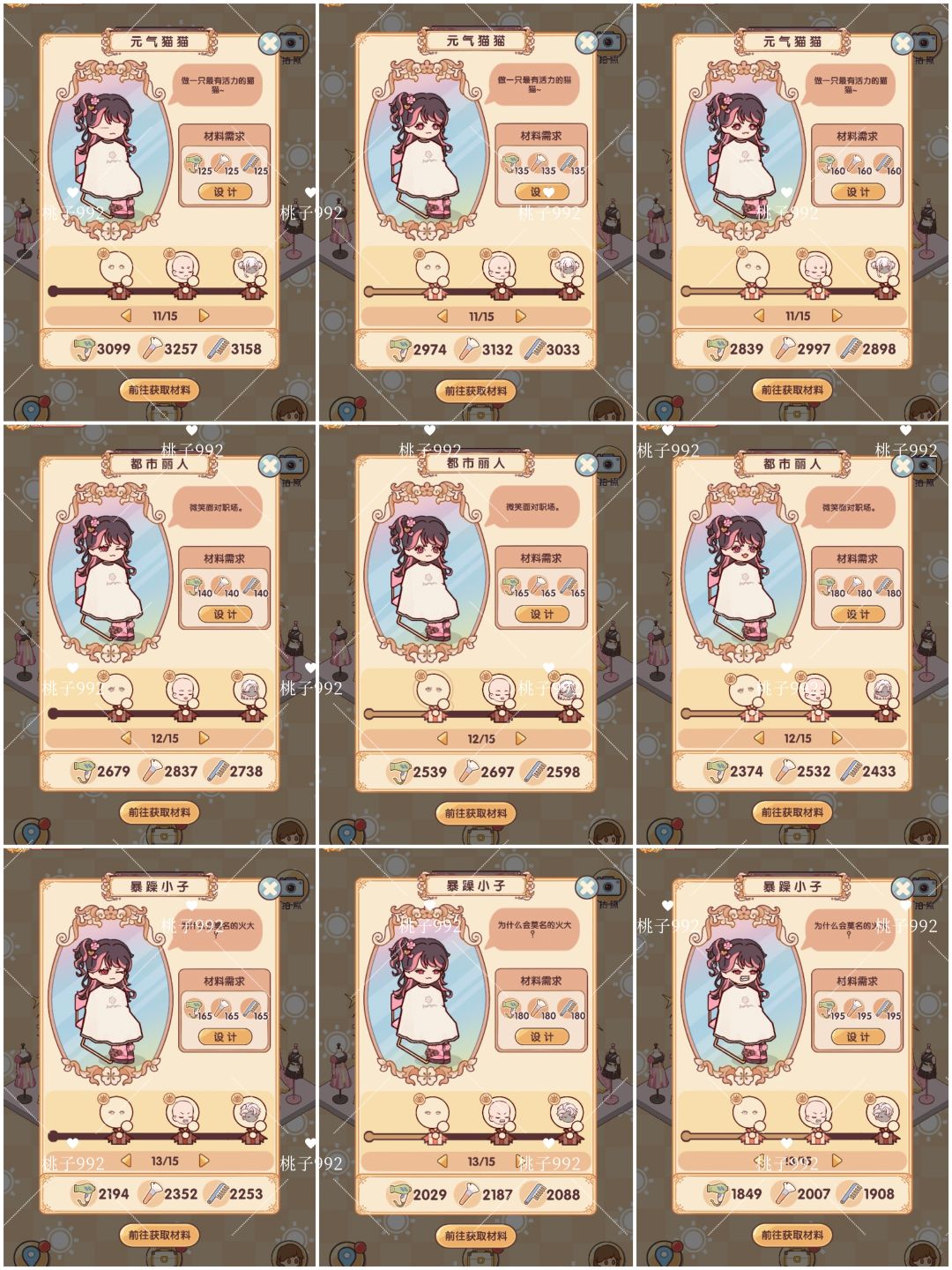 五套共需要:吹风机2650 刷子2650 梳子2650 元气猫猫:吹分机420刷子420梳子420 都市丽人:吹风机485刷子485梳子485 暴躁小子:吹风机540刷子540梳子540 搞怪小妹:吹风机575刷子575梳子575 朋克精神:吹风机630刷子630梳子630#悠悠与你一周年 #我的休闲时光 #我的休闲时光蜗居物语