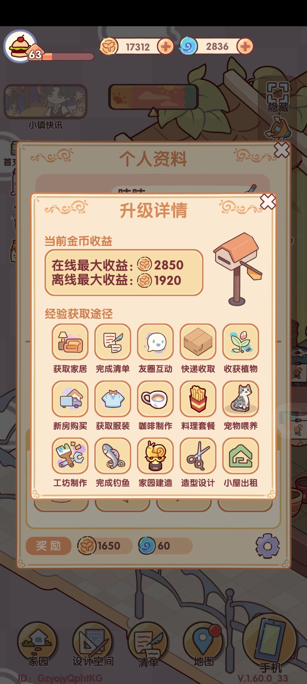 意外的很快就肝到了30级; 到30级奖励总结: 除常规服装、装修物品等,共计可获得6050金币、665蜗壳币、4150三叶币、19高级设计稿、4奇异种子、14初级设计稿、19营养液、34刷新券、13饲料包、34加速券、头像头像框各1; 到60级奖励总结等我再肝两天补充~ 本期任务感觉比之前都要简单,比如收集咖啡素材、收集造型材料都比之前要求的要少了不少,加上有一些只要购买家具、种子、做几杯咖啡收几