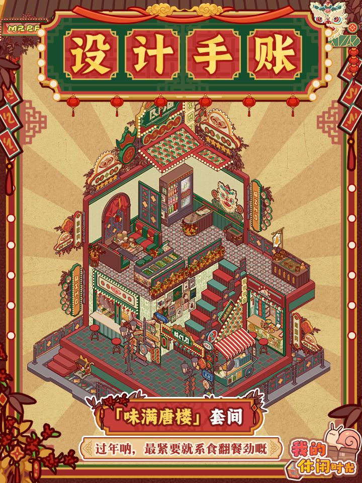 福利兑换码:味满佳肴聚唐楼 在游戏左上角头像处点击右下角的「齿轮」-「兑换码」并填写以上兑换码,即可获得华灯设计稿*3、蜗壳币*60,有效期至2025年2月4日。 祝大家欧气满满哟!#我的休闲时光 #我的休闲时光兑换码