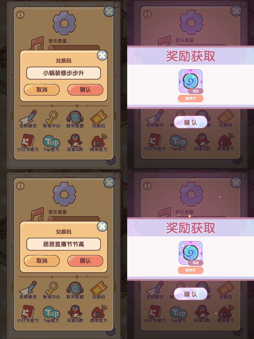 我的休闲时光最新兑换码 🎁兑换码: 1️⃣小蜗装修步步升 2️⃣居居直播节节高 🌟内容: 1️⃣蜗壳币*188 2️⃣蜗壳币*188 ⏰有效时间:速领❗❗❗ #我的休闲时光 #小美的休闲时光 #我的休闲时光兑换码 #我的休闲时光创作官 #我的休闲时光蜗居物语