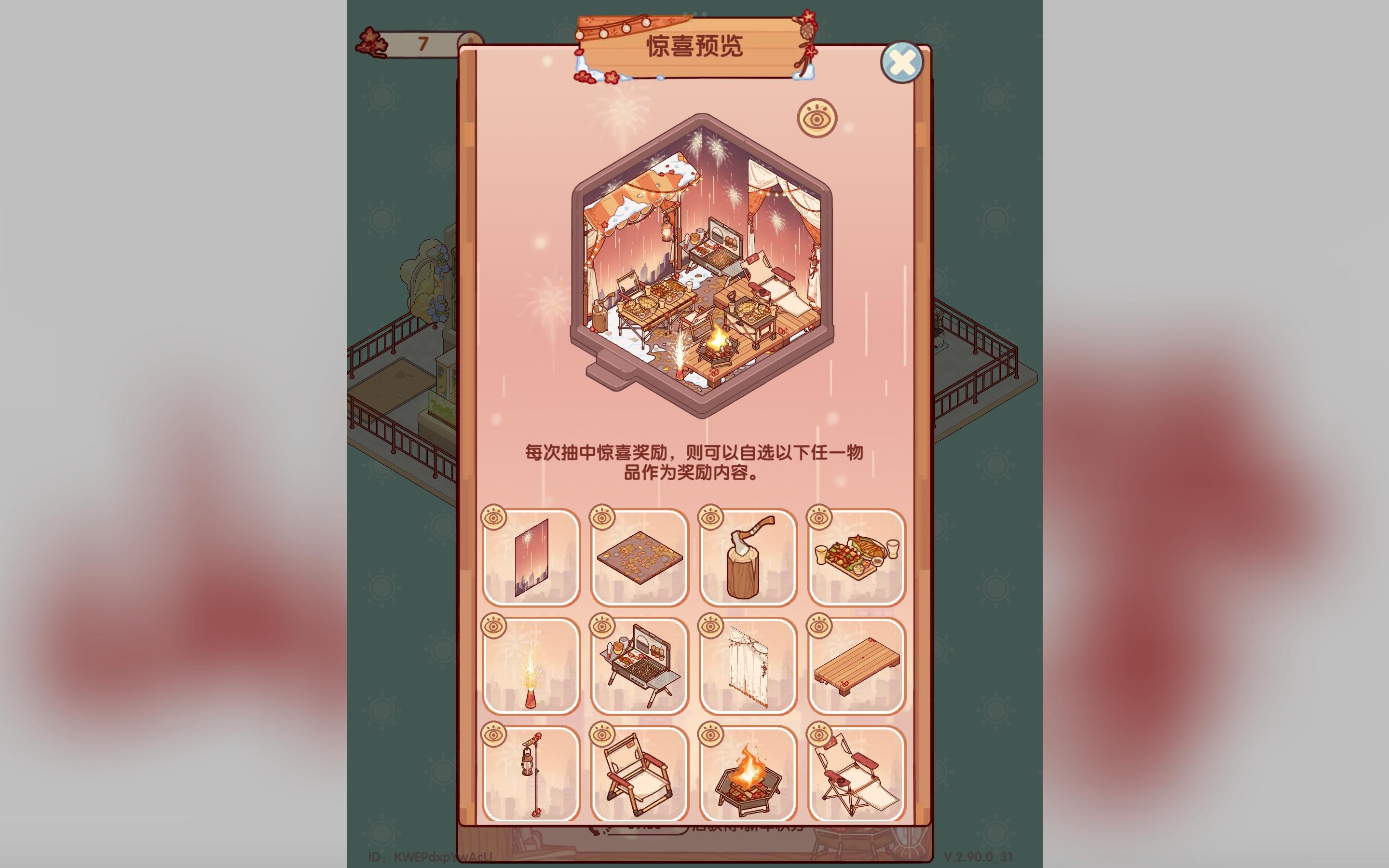 本来打算抽完的结果喜欢的窗出了 剩下的碎片够把我喜欢的酒柜和楼梯换了 但是已经下了60抽不抽完感觉有点亏,但其他的家具感觉没那么实用 又怕抽完新年的就抽不了 真的好纠结。