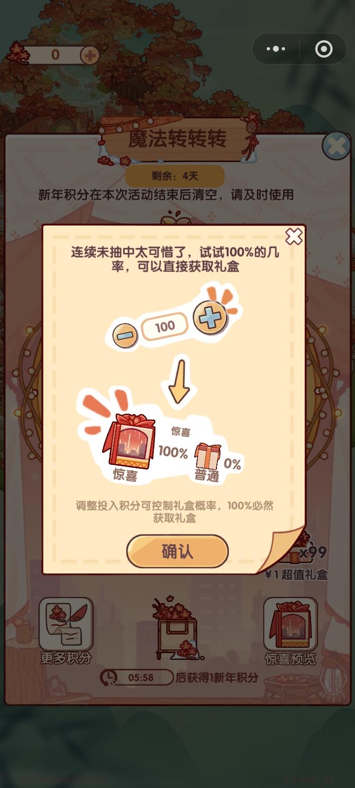 气笑了,跳出来这个羞辱我呢???一直歪,一直歪,连续四次,我寻思你这不是转盘游戏吗?撑死顶多三次,第四次你居然还能歪,如果只能100%才能拿到,那么这个靠概率的游戏玩法有什么必要上吗