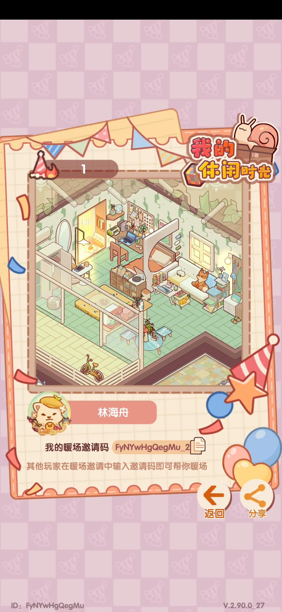 我每天至少上线一个小时,暖场有看到都会回!请有需要互助的宝宝加我!!yhdcSPeOkrHr#我的休闲时光 #我的休闲时光蜗居物语 #我的休闲时光十月激励计划 #我的休闲时光礼包码 #我的休闲时光兑换码 #我的休闲时光我的休闲时光