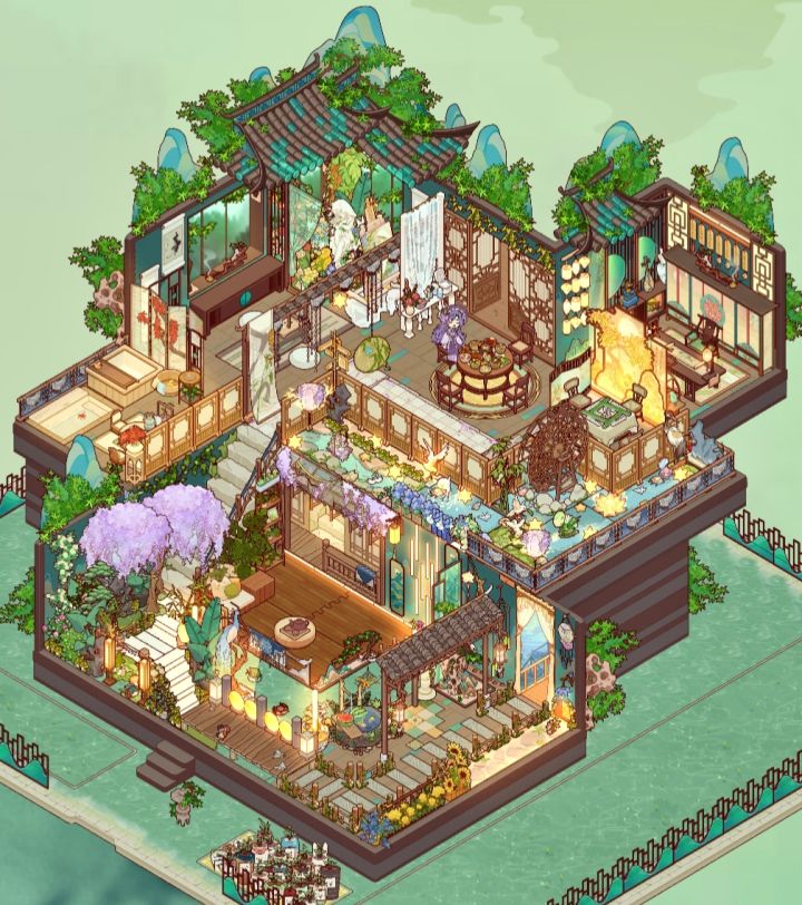 p1全景p2-3小径直接连接三楼p4二层小院p5-6水车流水造景p7书房p8麻将区,午后可以打麻将消遣时光p9室外餐厅p10画室p11会客厅p12室外浴室(由于只能放九张,所以p10.11.12在评论区了)#玉案芙香微场景 #我的休闲时光 #我的休闲时光装修分享