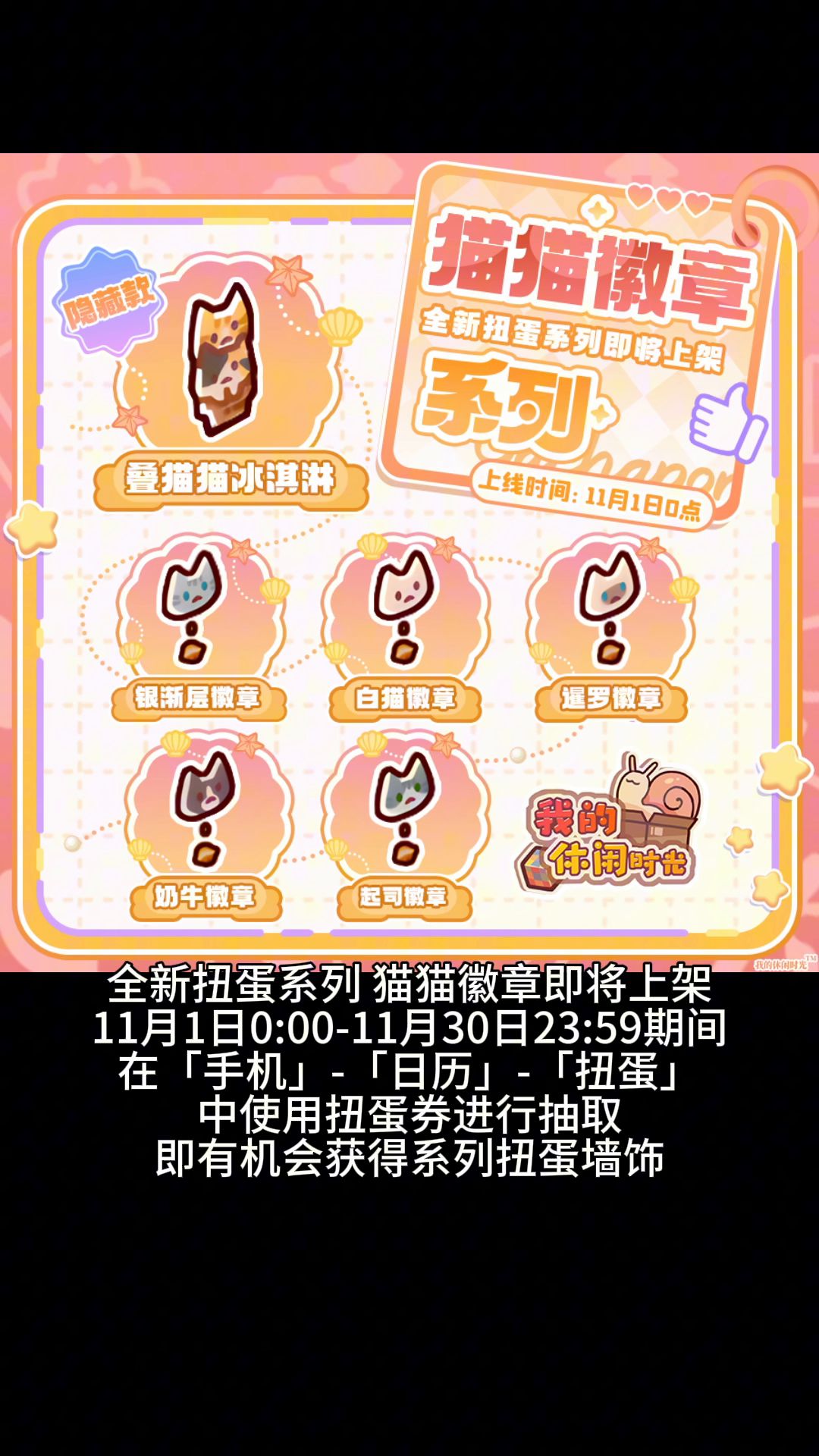 【我的休闲时光创作官】全新扭蛋猫猫徽章上新(试运营)