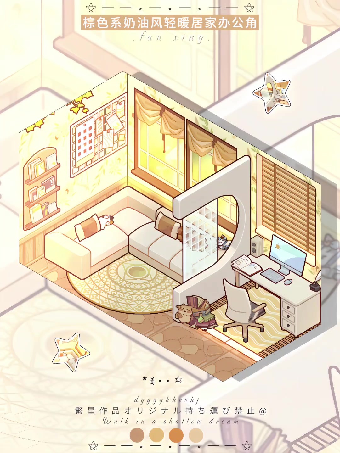 棕色系奶油风轻暖居家办公角