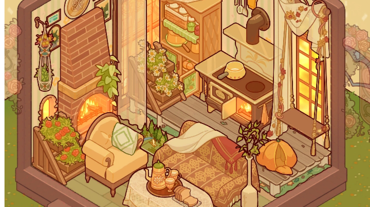 蜗壳新出的南瓜套真的好喜欢,主要是有食物摆件,又是暖光色调,而且是乡村田园风,戳中我心吧♡←但是我因为不怎么充就是日常攒壳子类型所以一般不喜欢的就抽完免费的,喜欢的就抽个两千多,留一点给下一套缓冲,还好这次的屋顶外围什么的我也不是很喜欢,本来是这样打算的,结果抽到那个设计奖励八张设计稿的时候(平时抽到这里),我特别特别想要的那个吊篮墙饰还有窗户还有花盆+椅子都没出过,然后我壳子也不多了还有一千左右