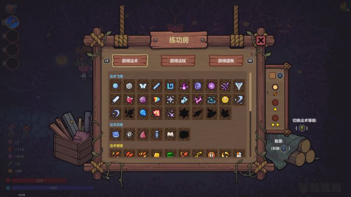 游戏的游戏风格其实是缝合的noita+哈迪斯。核心玩法是通过法杖插槽中插入各种法术,而不同的法术之间会产生不同的效果,同时通过哈迪斯过房间拿不确定奖励的模式,来合理搭配不同的武器、法术和遗物,来追求最大伤害,增加游戏的随机性和乐趣性。而游戏最强调的还是法术之间搭配、法术与武器之间搭配,相较之下,遗物反而更像是锦上添货的东西。