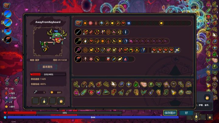 新增了不少法术、法杖和遗物,与最初版本相比已经多了三分之一。新增了两张地图,就是第四章和第五章。里面的怪物也都是全新模型,对应不同的技能。本人也刚新开了一把,明显能感觉到对于数值做了调整,现在全部的五章地图通关,而且第五章全都是BOSS战,通关时间比原来耗时还短。而且过图和成型上也更加的丝滑,我新开一把就能顺利通关,虽然没有做到最佳搭配,但是成就感和正反馈还是拉满的。