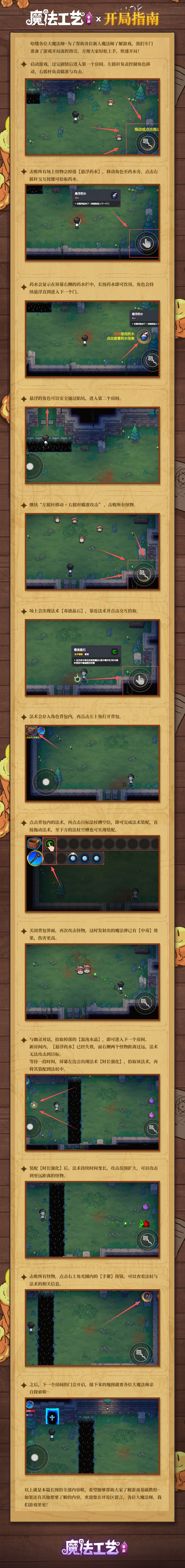 成为大魔法师的第一步,自然是学习游戏基础操作! 今天为大家带来新手引导图文介绍,帮助新人魔法师更快上手~ 魔法工艺手游现已上线,快来开启你的魔法之旅! 前往下载:https://www.taptap.cn/app/242283 #steam移植 #独立游戏 #魔法工艺