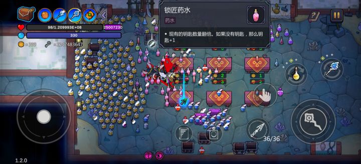 兄弟们我发现了一个bug!首先选获得遗物药水带然后把药水拿满,随便无伤通关应该boos在血房找到重启钥匙就可以无线刷药水!
