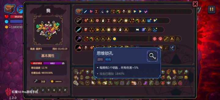 药剂师除外的角色才可以刷遗物:药水带随便带一瓶药水第一关boss血色房刷重置钥匙重置后只要重置的遗物里没药水带不拿药水带不返回主菜单遇到药水就点一下掉一瓶,无限量橙色遗物满了后,就会掉如图神奇的东西要水一刷,只靠被动3402亿,已经不需要法杖法宝了。