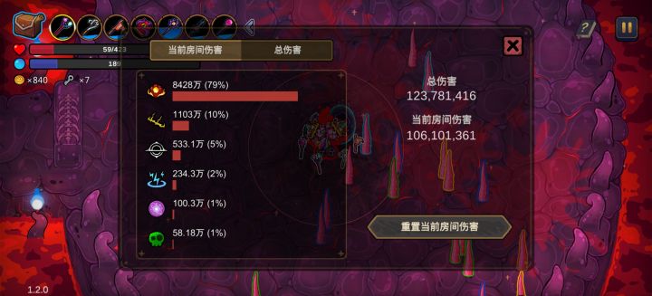 药剂师除外的角色才可以刷遗物:药水带药水拿满第一关boss血色房刷重置钥匙重置后只要重置的遗物里没药水带不拿药水带不返回主菜单遇到药水就点一下掉一瓶,无限量橙色遗物满了后,就会掉如图神奇的东西要水一刷,只靠被动3402亿,已经不需要法杖法宝了。