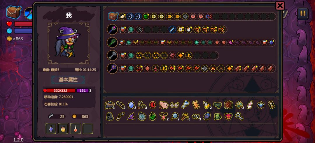 前两章进门优先级 血上限--法术--金币,别的房间都不要进,快捷房也不要进。打完boss进入红色房间尽量选自己能用的。进boss前一定要有护盾,被伤害了只要护盾不被破,不掉血也会开红色房间。第三四章进门优先级 遗物--商店--加工房--金币。法术选追踪鼠标,落雷范围大群攻,大刀消灭子弹。一定要有召唤柱子,能挡住大多数boss技能。法杖选雨伞,柱子加雨伞加大刀,基本没有飞弹能打中你。