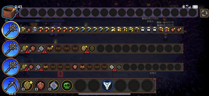 发现个好玩的搭配,秒伤15w+,吞星者自带命中充能,汲取命中回蓝,落雷多段攻击,加个杖灵就能挂机了。伤害上限跟多重挂钩。