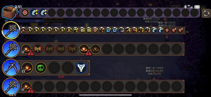 先说结论,不sl情况下,目前各个流派体验下来最强的还是光柱流。这个流派我目前打的基本没低于十亿秒伤,这还是建立在我 没用药剂流刷钱的前提下,要是顶配我是很难想象这个伤害。并且这个流派成型不需要保命上屏障,进图即清图。这把特意用毒想看下能不能提上限,很遗憾,这把秒伤二十亿伤害毒还打不到一亿,毒得另外吃打击次数跟增伤,光柱的增伤主要是血量提供的,对毒增幅太小。关于流派,目前打直伤的受限于扩容石