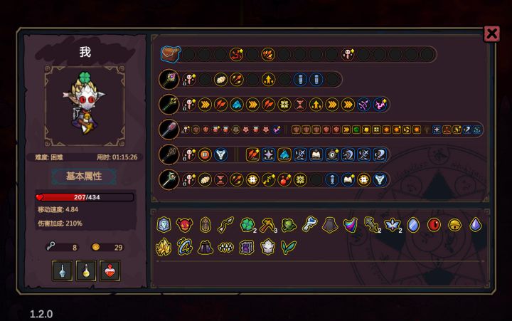 终于通关了,玩了一个星期,第一次通关,不过最后那个作者没有打过,是想玩召唤流的,但是那个是真的太难搭配了,就是老是找不到自己想要的法术,最后还是向现实低下了头颅玩上轮椅飞剑了,但是飞剑也是,有时候伤害很高,但有时候左右脑互搏,自己伤害弄得很低