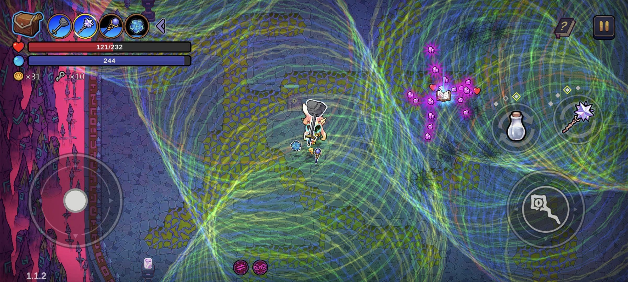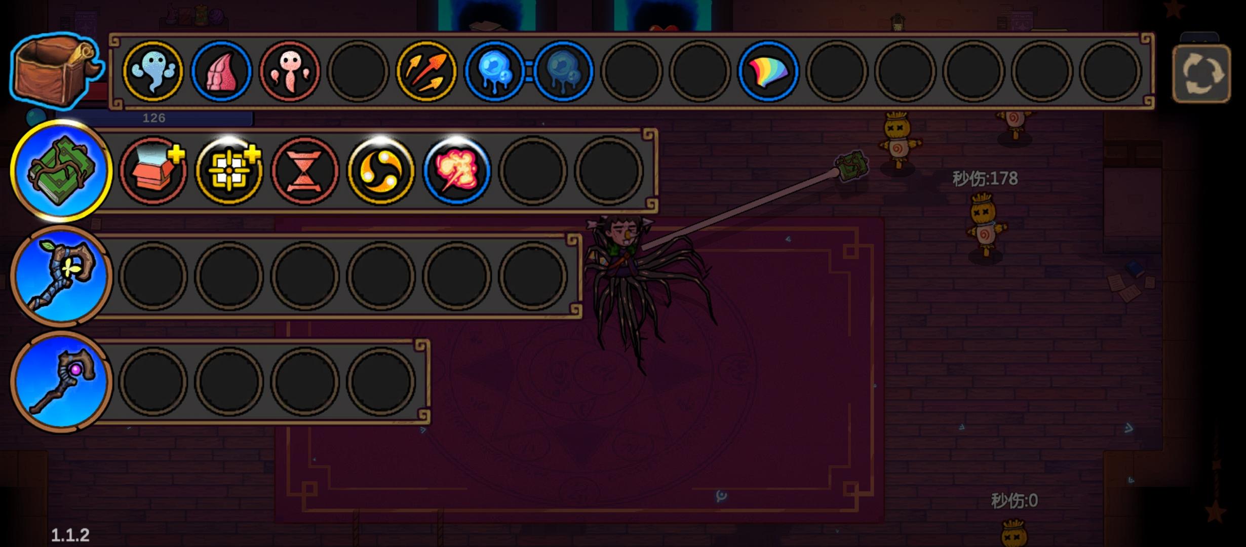 ●获得那把站立充能的法杖、叠的毒雷●然后一瓶石化药水、直接30s石化不动、也能触发攻击、boss直接被毒到1/4血(到这里需要清理四个角落的怪才能继续打boss)简直是躺过