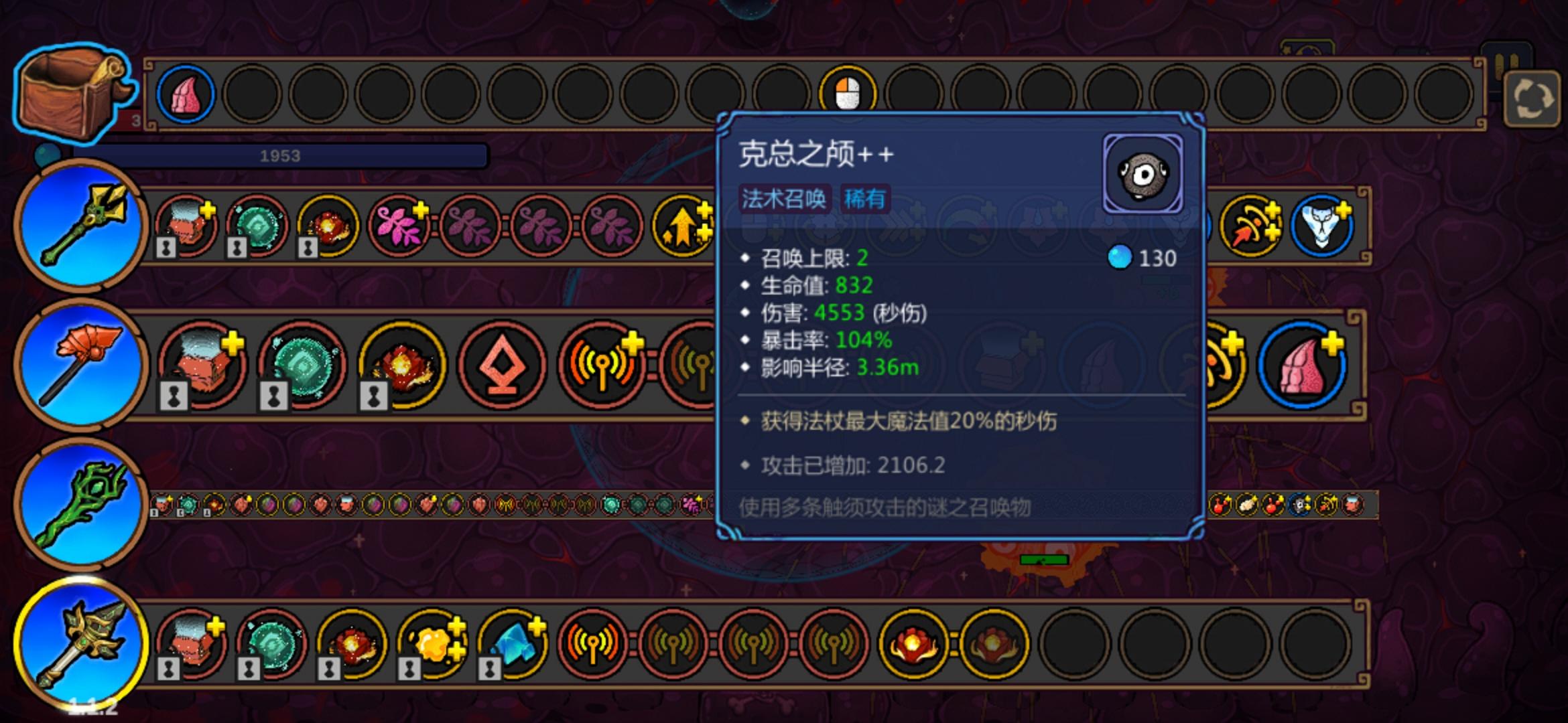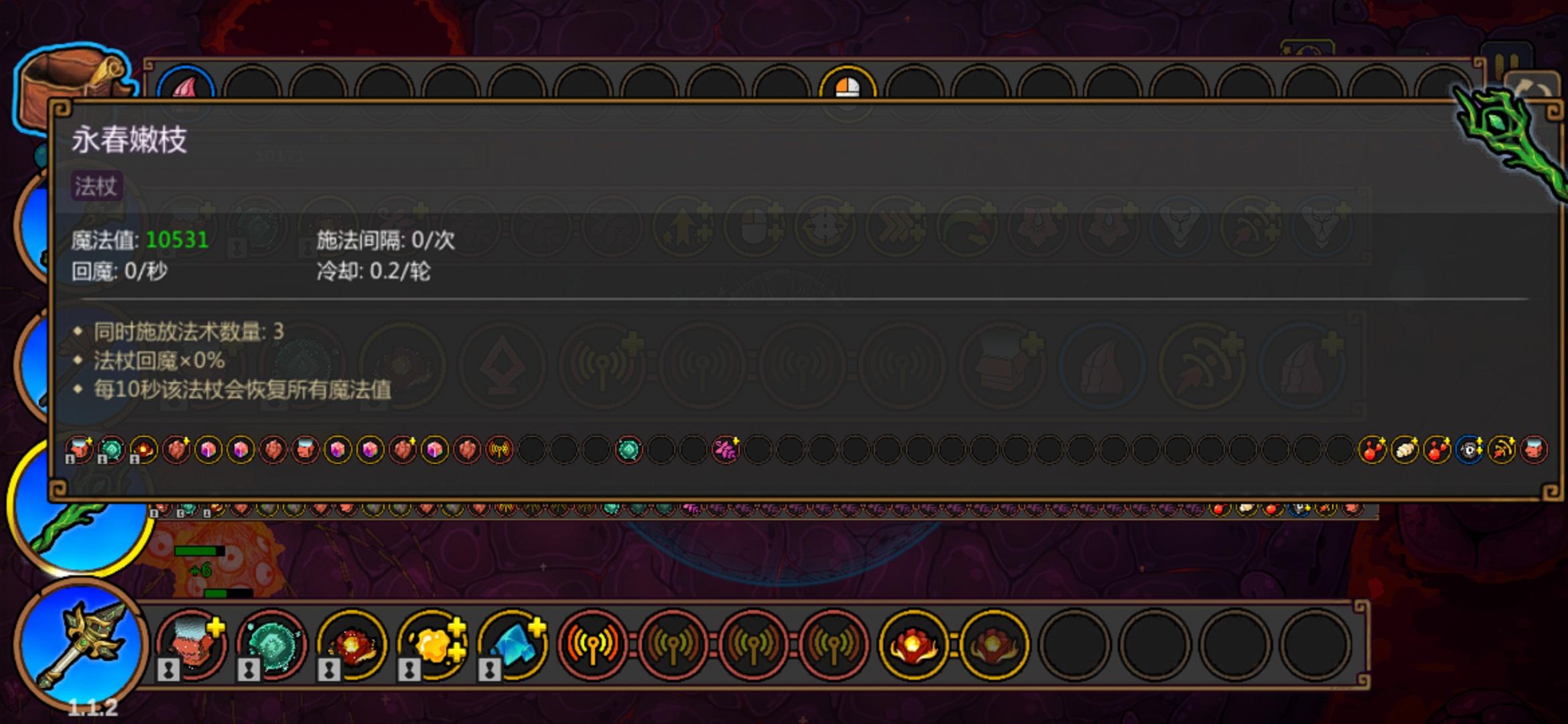 攻击充能搭配锤子还是太超模了法杖推荐带有攻击充能,例如777,吞星者锤子无论是是在主动还是被动都能吃到双重和分裂效果,一个锤子当六个用,后面随便挂一个伤害高的法术,一下攻击不用点几秒钟秒boss