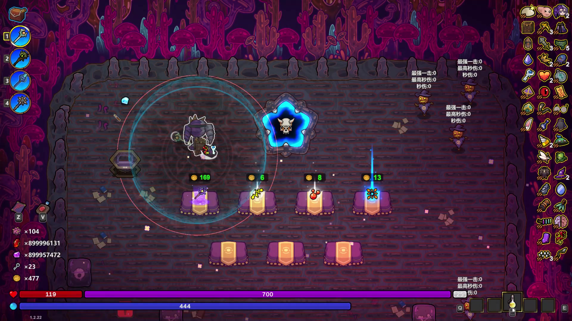 玩了大约一天谈一谈萌新的理解,试了好多次才通关普通,继续娱乐1:技能搭配1.1寻踪:必备技能,所有右侧技能自动追踪,比导航好用太多太多,完全站桩输出,必刷技能1.2守护仗灵:自动施法右侧技能,打一些技能太碎的Boss不用切换魔杖,排列好,自己输出,只要手动主魔杖就行1.3光柱必备,通关最后Boss时全屏技能,进门自动光柱子,Boss技能正面来站柱子后,后面来站柱子前,无脑通关1.4输出技