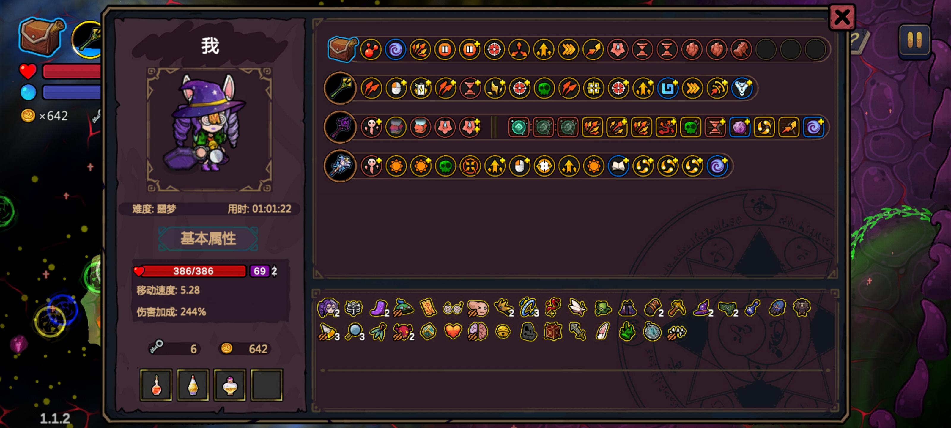 第一关拿了重生钥匙,随机到了商店宝珠和药水瓶还有药剂腰带,然后通关好运的拿到了遗物获取+1、罗盘、捡金币回血,第二关才第三个房间就拿到了注魔硬币……注魔硬币+捡金币回血+极限药剂加血量上限……这局真的爽了。 就是玩了这么多局就是没见过泉水房……还行刷血看看的……