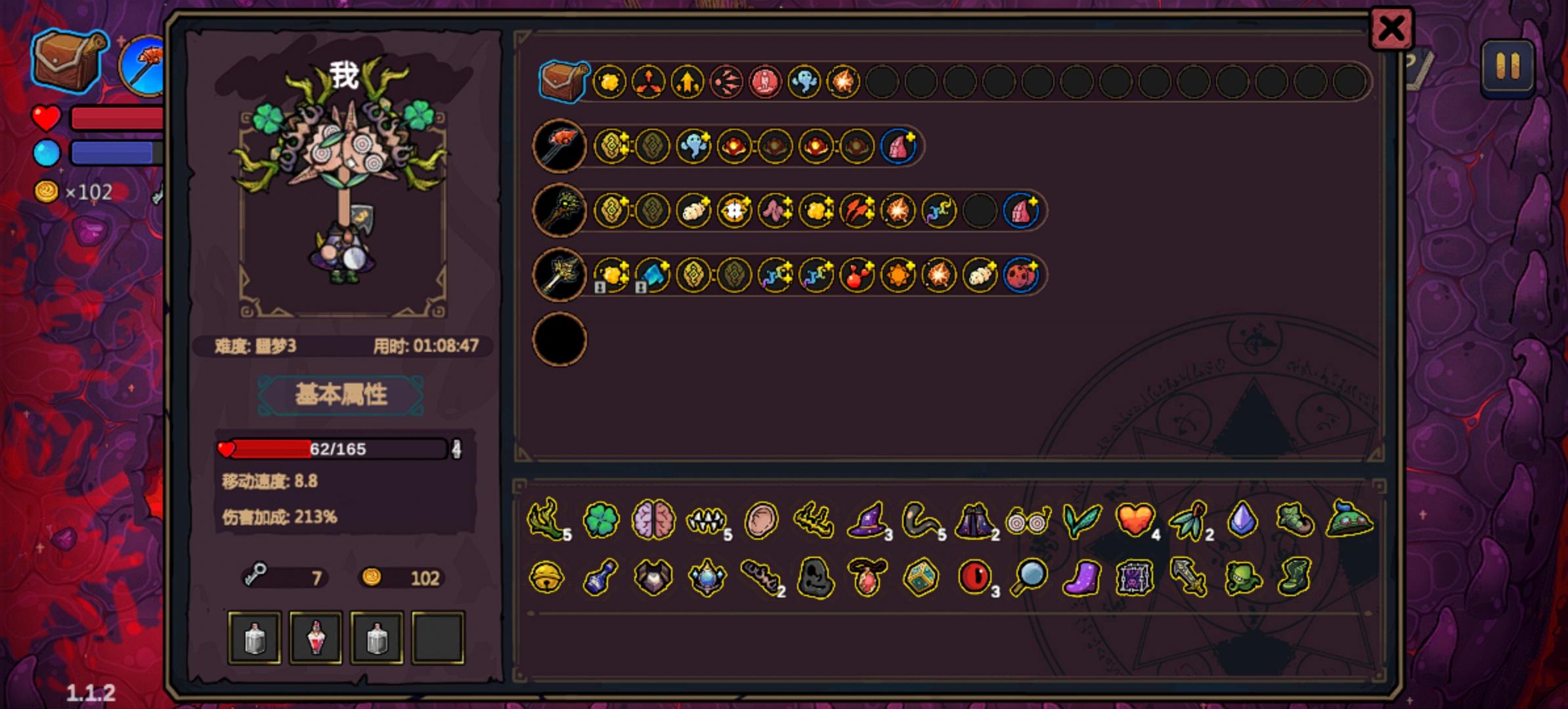 第三大关剩70多血一下死了,不知道是被秒了还是技能有副作用