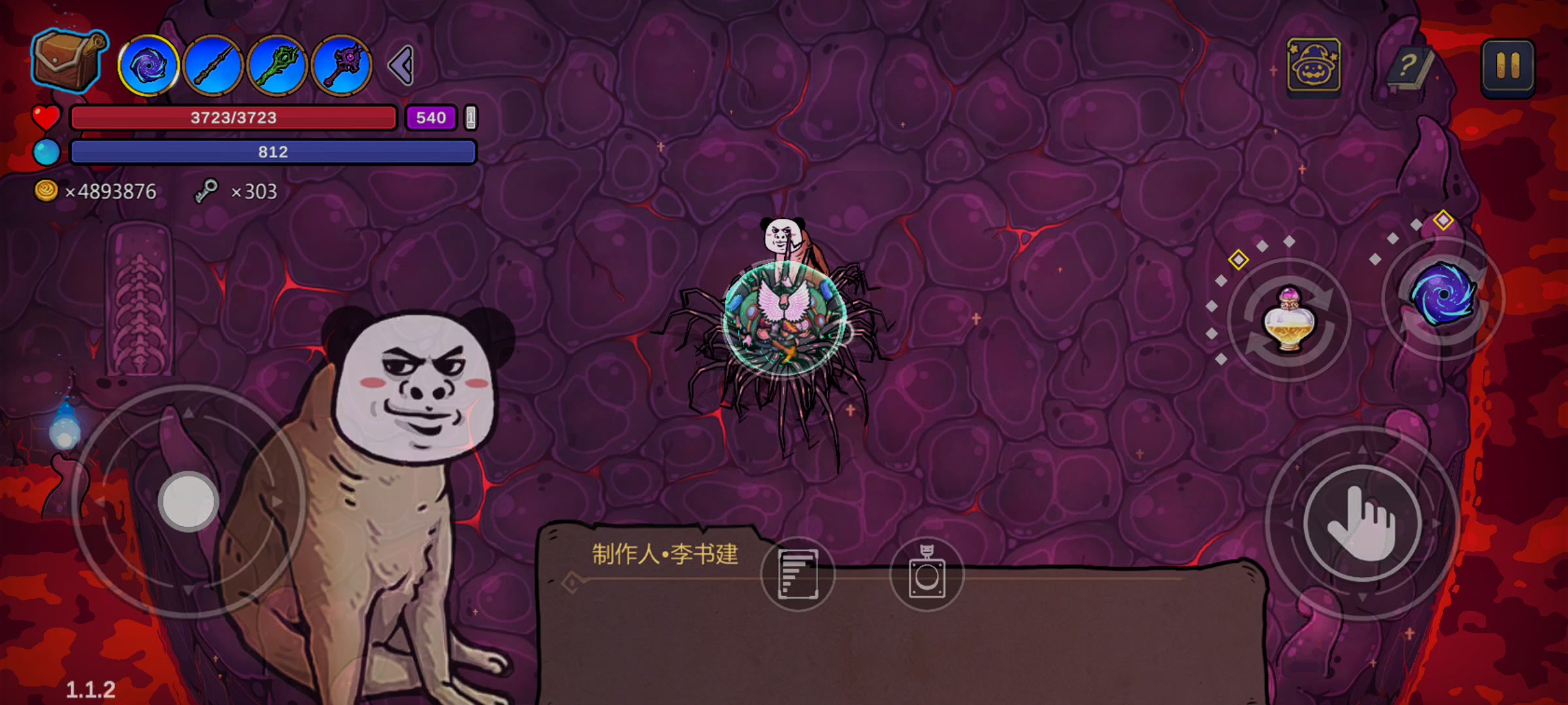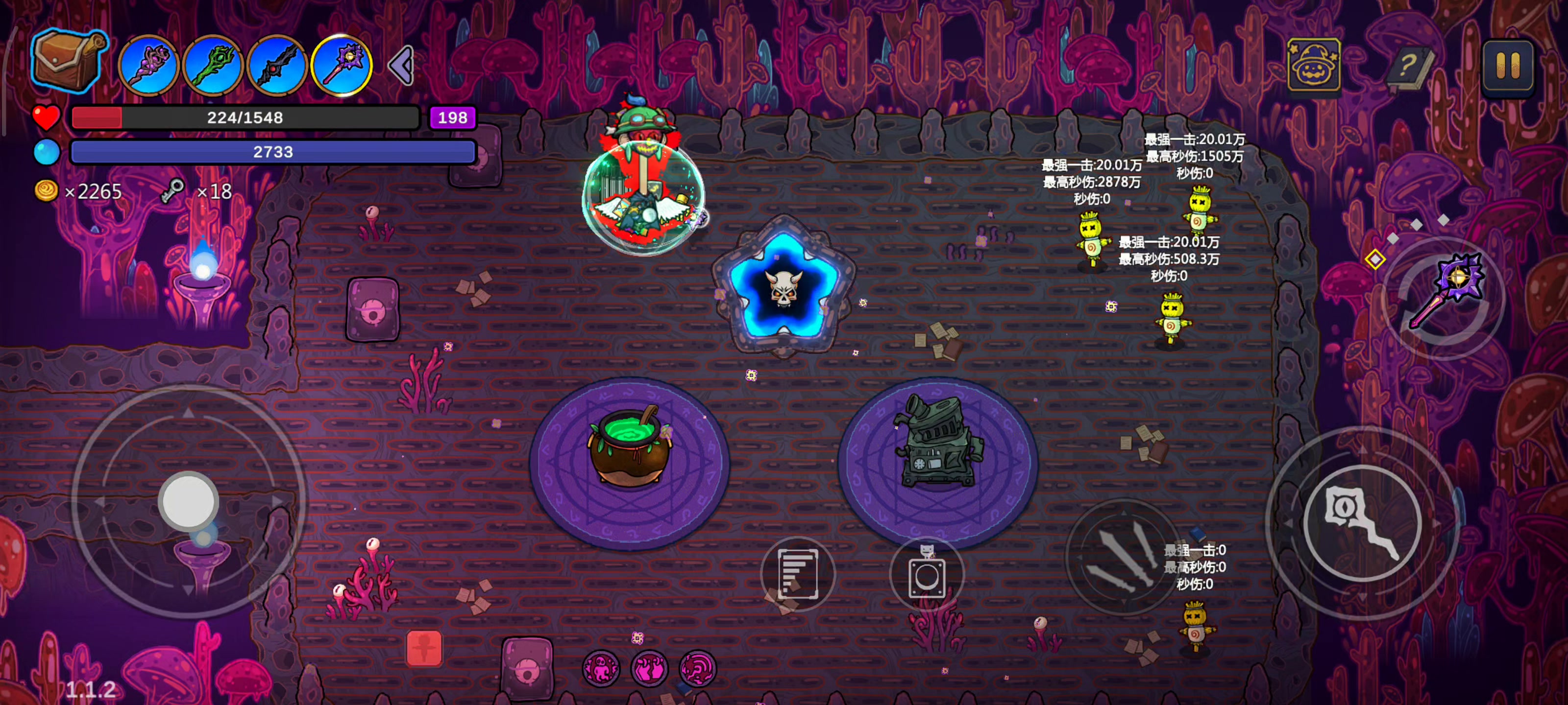 可惜缺了聚爆,不然伤害还能多很多。 这把就离谱,记不清吃了多少个体型药水,除了最后一个是缩小外,全部都是变大,体型都超过屏幕高度一半有余了。